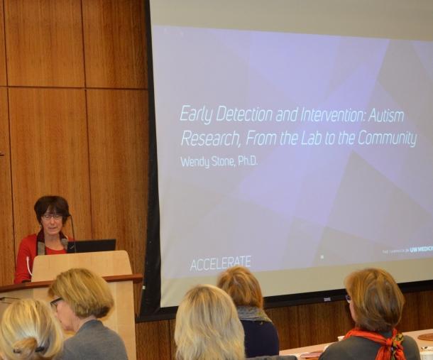 The University of Washington, in partnership with Seattle Children’s Autism Center, is a national leader in researching and developing groundbreaking treatments and therapies. Over 40 ARCS Foundation Seattle Chapter members took advantage of this unique opportunity to explore the research and clinical programs at the University of Washington which are unlocking the mysteries of autism. Faculty presentations and the closing panel discussion addressed: the genetic causes of autism and personalized medicine, early detection and intervention, and adult transition programs. Thank you to our speakers: Mike Halperin, MD; Jurgen Unutzer, MD, MPH, MA; Raphael Bernier, PhD; Annette Estes, PhD; Wendy Stone, PhD;Gary Stobbe, MD; Ilene Schwartz, PhD.